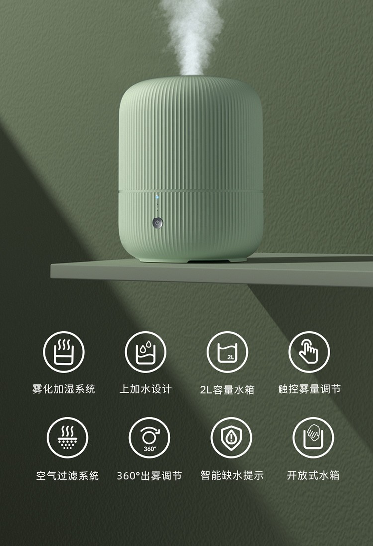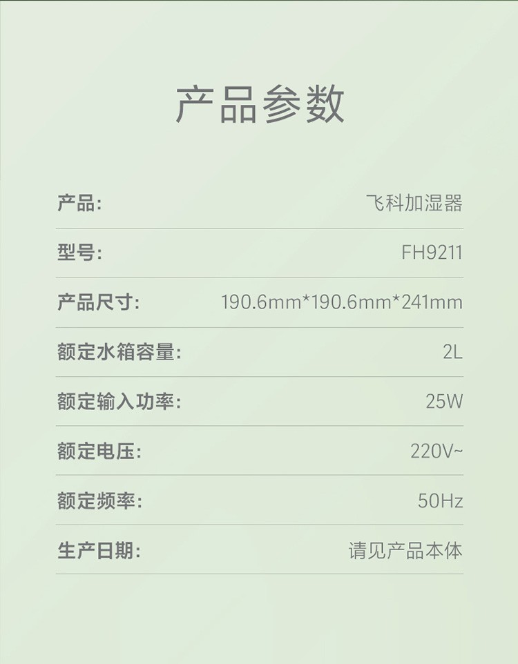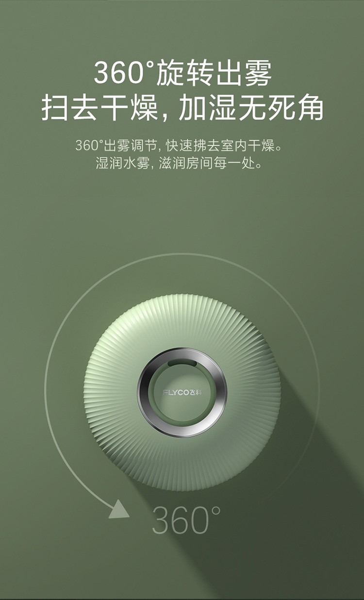 FLYCO humidifier household light tone bedroom office air humidifier small sprayer large fog volume pregnant women and babies landing desktop portable water 2L green Huadeng Yunjian humidifier FH9211